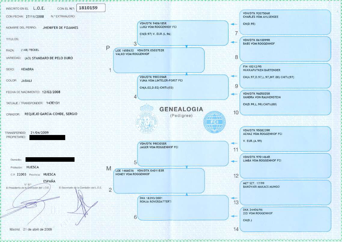| Afijo de la Real Sociedad Canina de España, nº 2.007 y Núcleo Zoológico autorizado por el Gobierno de Aragón nº 125-HU-955 | |
